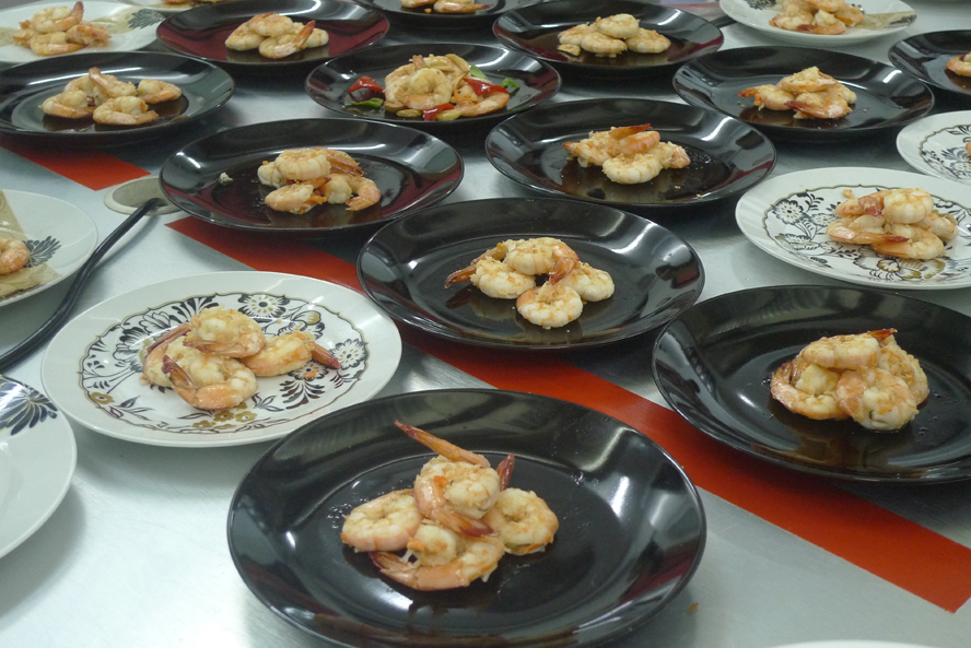 The sayings, “many hands makes the work lighter” is true. By noon, we have semi prepared 8 dishes for 60 people. They were really very efficient and listened so well to my instructions. You do know how particular I am. Being born a Nyonya, always must be perfect in all cuts and trims. They didn’t do too badly, really. I am impressed.